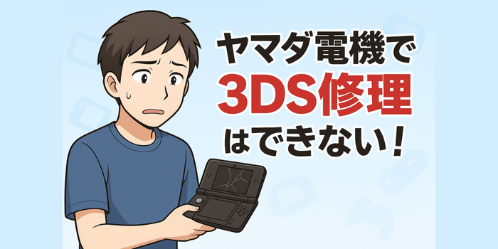 ヤマダ電機で3DSの修理ってしてもらえるんですか? ヤマダ電機では、3DSの修理対応をしてないと思った方がいいよ。 ニンテンドー3DSや2DSなどを遊んでいる方の中には、本体の調子が悪くなって修理にだそうか考えている方もいるのではないでしょうか? 近く...【知らないと損】壊れた3DSはゲオで買取できる?注意点と代替サービスまとめ